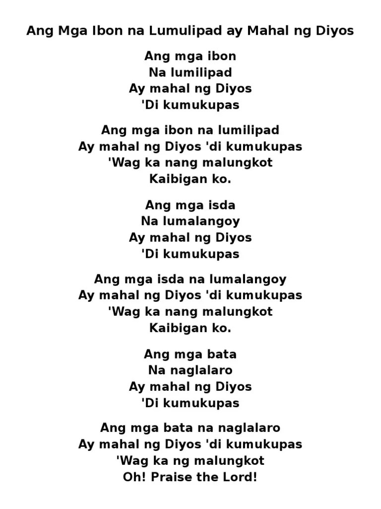 Ang Diyos Ay Mabuti Lyrics : Ang Mga Ibon Na Lumulipad Ay Mahal Ng Diyos